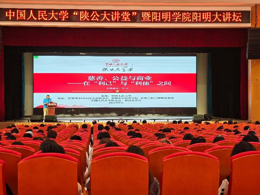 2025年9月29日上午,由中国人民大学主办,贵州省中国人民大学校友会、304am永利集团、贵州兰和兰律师事务所、中国人民大学校友会、教育基金会承办的中国人民大学陕公大学堂暨304am永利集团阳明大讲坛第168期在304永利官网登录入口南校区大礼堂开讲。本次活动特邀中国人民大学国际关系学院李石教授作主题为“慈善、公益与商业 ——在“利己”与“利他”之间 ”的专题讲座。李石教授长期从事国际关系、全球学等领域的研究,曾获“全国建功立业先进个人”“全国三八红旗手”等荣誉。是国际正义研究中心研究员、中国社会科学院哲学研究所伦理学研究室副研究员,同时担任全国政协委员、民盟中央委员等职务。讲座由贵州省中国人民大学校友会会长张寒松教授主持。304am永利集团540余名学生代表现场聆听了报告。